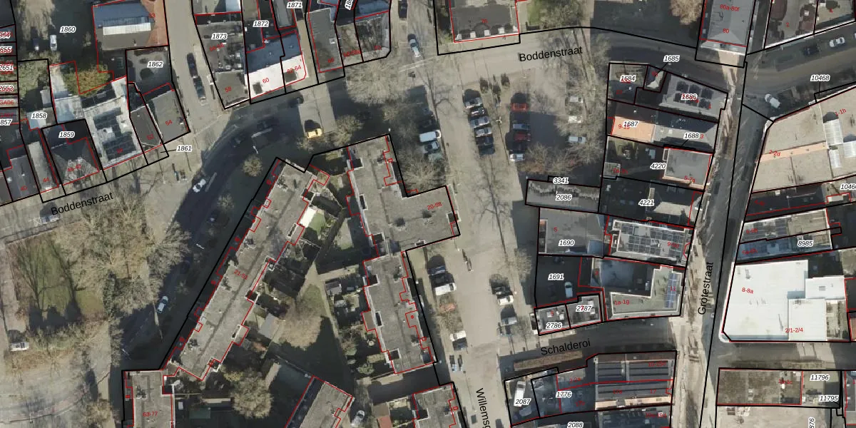 Het perceel waarop Willemsgang 26 staat heeft een oppervlakte van 1,2 ha. Dit is een zeer groot perceel. De perceeloppervlakte wordt geregistreerd door het Kadaster. Gedetailleerde informatie over de maten van dit perceel kunt u vinden in het rapport Kadastrale kaart met maatvoering van Willemsgang 26.