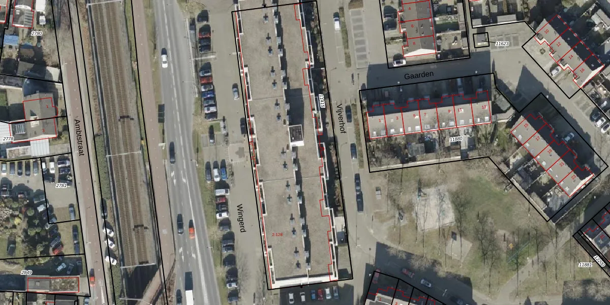 Het perceel waarop Wingerd 116 staat heeft een oppervlakte van 2574 m². Dit is een zeer groot perceel. De perceeloppervlakte wordt geregistreerd door het Kadaster. Gedetailleerde informatie over de maten van dit perceel kunt u vinden in het rapport Kadastrale kaart met maatvoering van Wingerd 116.