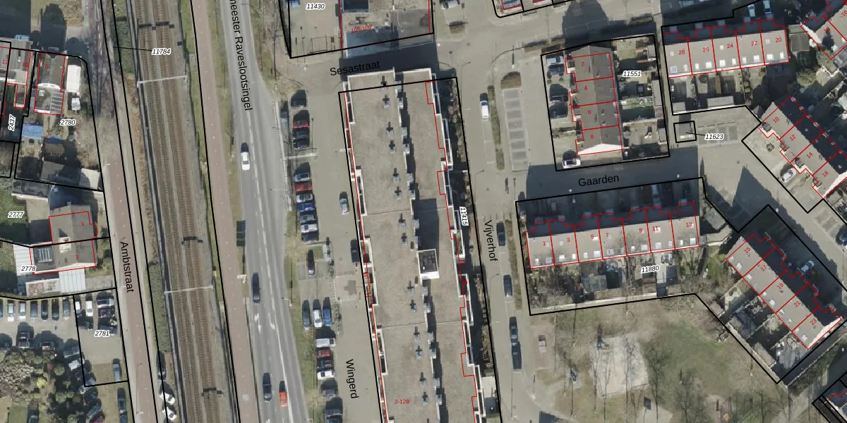 Het perceel waarop Wingerd 126 staat heeft een oppervlakte van 2574 m². Dit is een zeer groot perceel. De perceeloppervlakte wordt geregistreerd door het Kadaster. Gedetailleerde informatie over de maten van dit perceel kunt u vinden in het rapport Kadastrale kaart met maatvoering van Wingerd 126.