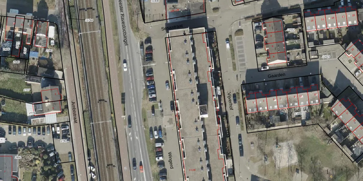 Het perceel waarop Wingerd 20 staat heeft een oppervlakte van 2574 m². Dit is een zeer groot perceel. De perceeloppervlakte wordt geregistreerd door het Kadaster. Gedetailleerde informatie over de maten van dit perceel kunt u vinden in het rapport Kadastrale kaart met maatvoering van Wingerd 20.