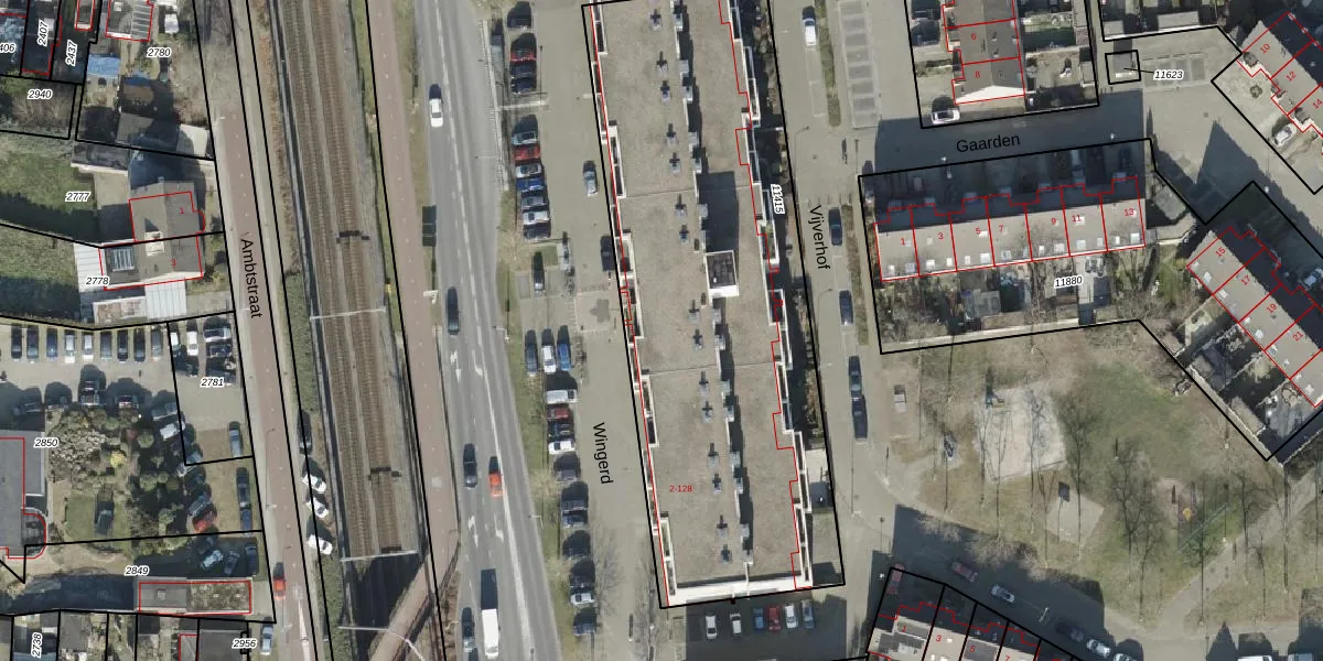 Het perceel waarop Wingerd 40 staat heeft een oppervlakte van 2574 m². Dit is een zeer groot perceel. De perceeloppervlakte wordt geregistreerd door het Kadaster. Gedetailleerde informatie over de maten van dit perceel kunt u vinden in het rapport Kadastrale kaart met maatvoering van Wingerd 40.