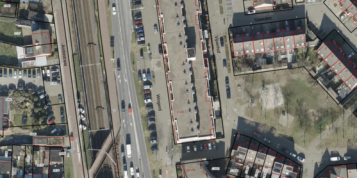 Het perceel waarop Wingerd 52 staat heeft een oppervlakte van 2574 m². Dit is een zeer groot perceel. De perceeloppervlakte wordt geregistreerd door het Kadaster. Gedetailleerde informatie over de maten van dit perceel kunt u vinden in het rapport Kadastrale kaart met maatvoering van Wingerd 52.