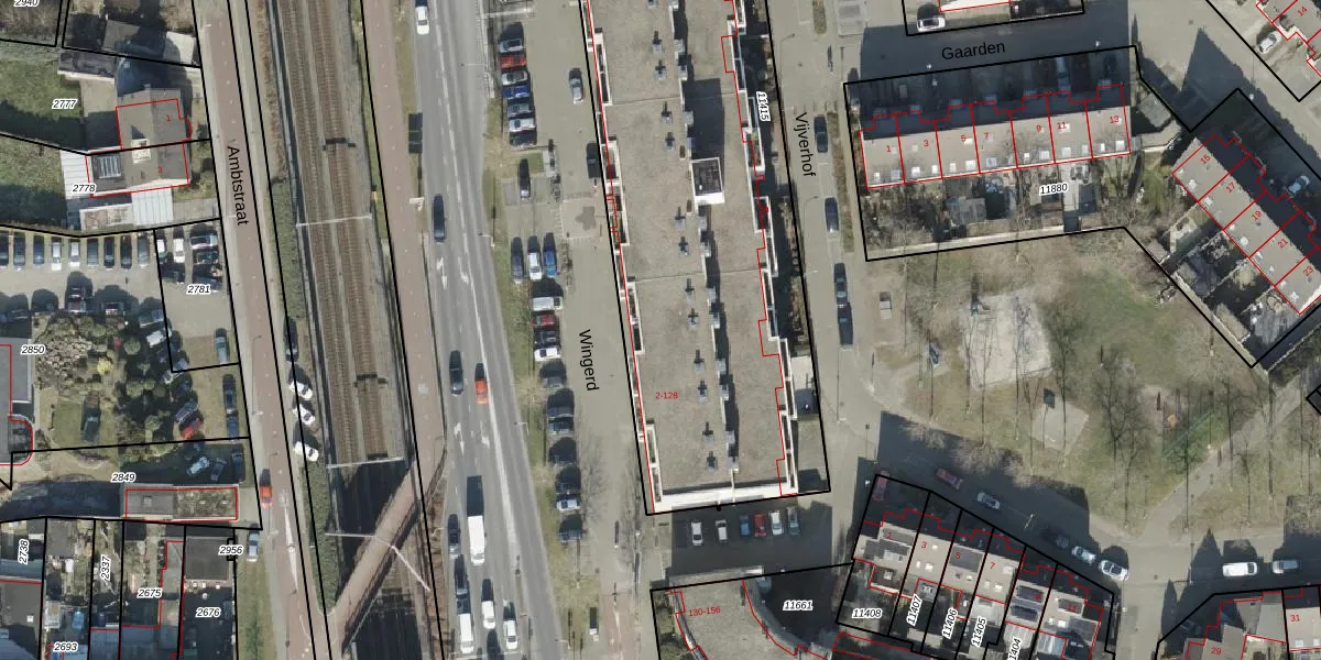 Het perceel waarop Wingerd 54 staat heeft een oppervlakte van 2574 m². Dit is een zeer groot perceel. De perceeloppervlakte wordt geregistreerd door het Kadaster. Gedetailleerde informatie over de maten van dit perceel kunt u vinden in het rapport Kadastrale kaart met maatvoering van Wingerd 54.