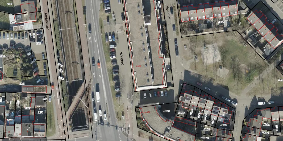 Het perceel waarop Wingerd 66 staat heeft een oppervlakte van 2574 m². Dit is een zeer groot perceel. De perceeloppervlakte wordt geregistreerd door het Kadaster. Gedetailleerde informatie over de maten van dit perceel kunt u vinden in het rapport Kadastrale kaart met maatvoering van Wingerd 66.
