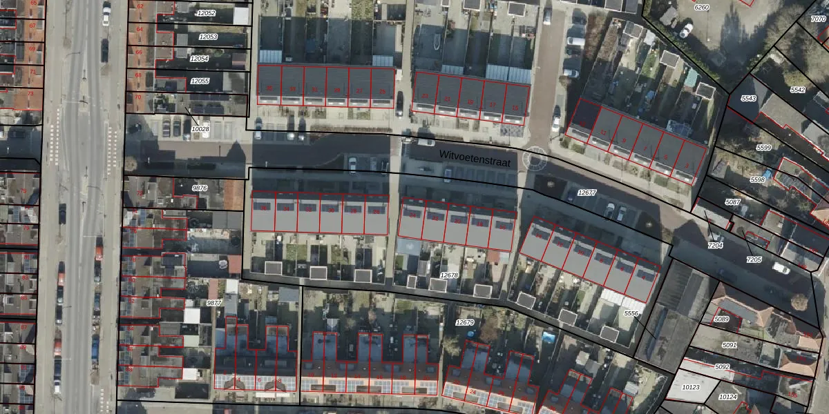 Het perceel waarop Witvoetenstraat 24 staat heeft een oppervlakte van 2920 m². Dit is een zeer groot perceel. De perceeloppervlakte wordt geregistreerd door het Kadaster. Gedetailleerde informatie over de maten van dit perceel kunt u vinden in het rapport Kadastrale kaart met maatvoering van Witvoetenstraat 24.