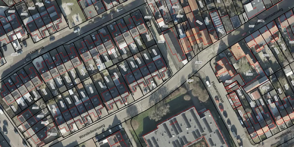 Gebruik de zoekbalk of klik op een perceel voor informatie over de adressen binnen dit perceel.