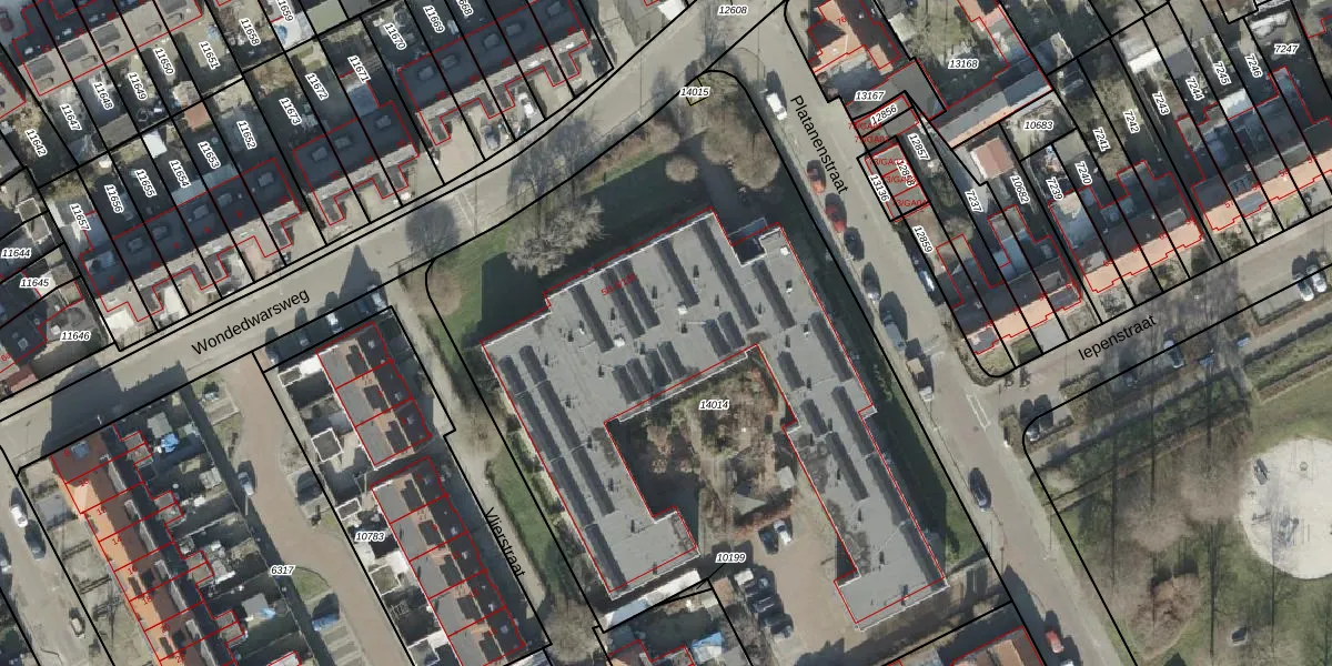 Het perceel waarop Wondedwarsweg 5-106 staat heeft een oppervlakte van 4526 m². Dit is een zeer groot perceel. De perceeloppervlakte wordt geregistreerd door het Kadaster. Gedetailleerde informatie over de maten van dit perceel kunt u vinden in het rapport Kadastrale kaart met maatvoering van Wondedwarsweg 5-106.