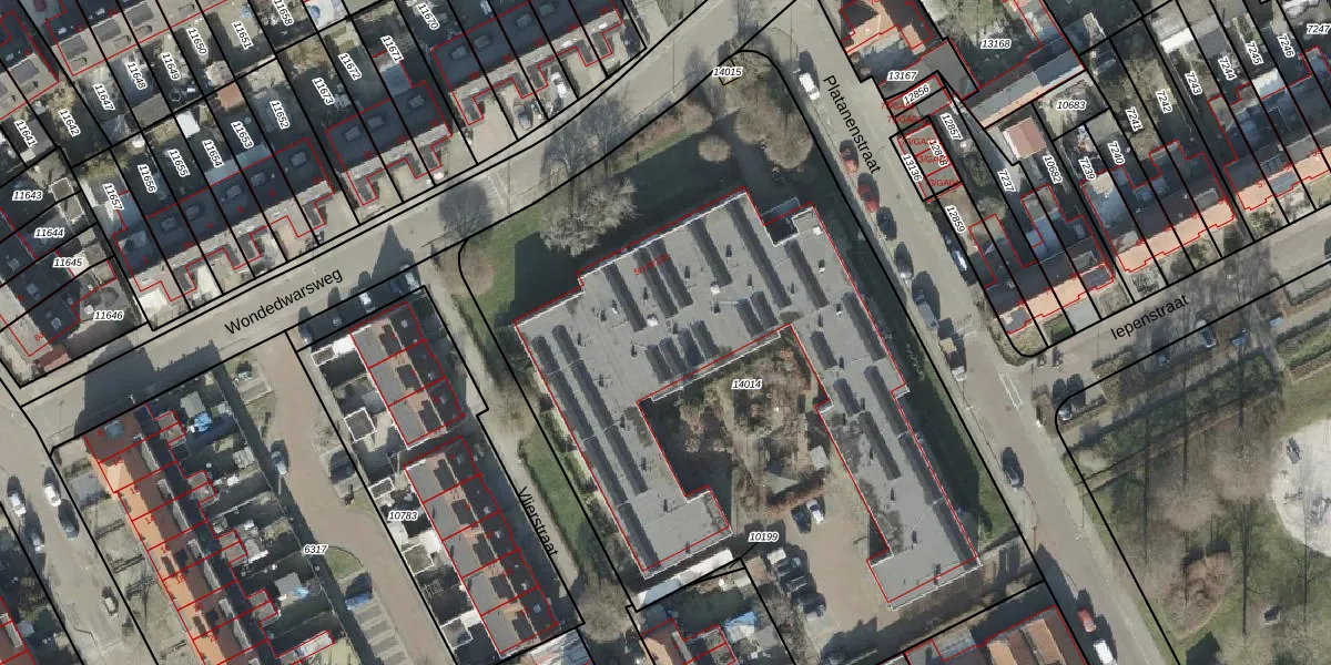 Het perceel waarop Wondedwarsweg 5-9 staat heeft een oppervlakte van 4526 m². Dit is een zeer groot perceel. De perceeloppervlakte wordt geregistreerd door het Kadaster. Gedetailleerde informatie over de maten van dit perceel kunt u vinden in het rapport Kadastrale kaart met maatvoering van Wondedwarsweg 5-9.