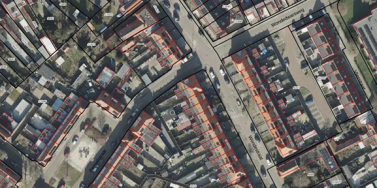 Het perceel waarop Wondestraat 15 staat heeft een oppervlakte van 6550 m². Dit is een zeer groot perceel. De perceeloppervlakte wordt geregistreerd door het Kadaster. Gedetailleerde informatie over de maten van dit perceel kunt u vinden in het rapport Kadastrale kaart met maatvoering van Wondestraat 15.