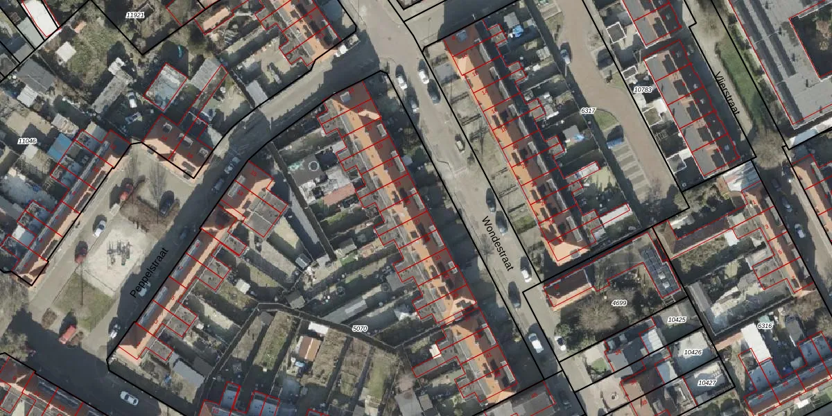 Het perceel waarop Wondestraat 25 staat heeft een oppervlakte van 6550 m². Dit is een zeer groot perceel. De perceeloppervlakte wordt geregistreerd door het Kadaster. Gedetailleerde informatie over de maten van dit perceel kunt u vinden in het rapport Kadastrale kaart met maatvoering van Wondestraat 25.