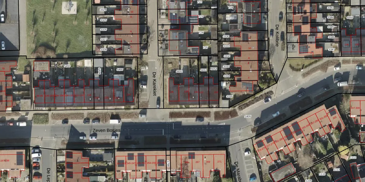 Het perceel waarop Zeven Bosjes 128 staat heeft een oppervlakte van 560 m². Dit is een groot perceel. De perceeloppervlakte wordt geregistreerd door het Kadaster. Gedetailleerde informatie over de maten van dit perceel kunt u vinden in het rapport Kadastrale kaart met maatvoering van Zeven Bosjes 128.
