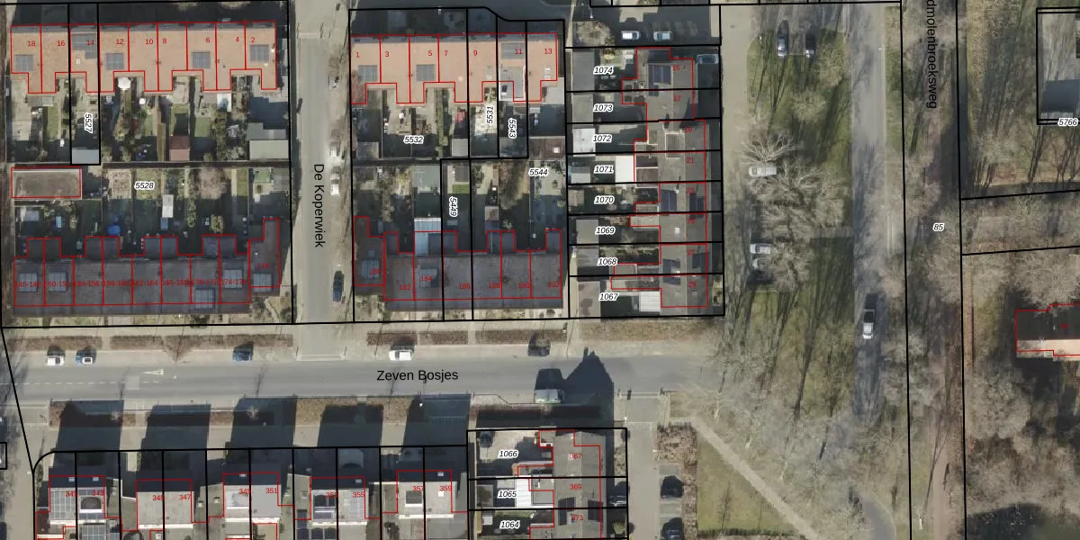 Het perceel waarop Zeven Bosjes 192 staat heeft een oppervlakte van 715 m². Dit is een groot perceel. De perceeloppervlakte wordt geregistreerd door het Kadaster. Gedetailleerde informatie over de maten van dit perceel kunt u vinden in het rapport Kadastrale kaart met maatvoering van Zeven Bosjes 192.