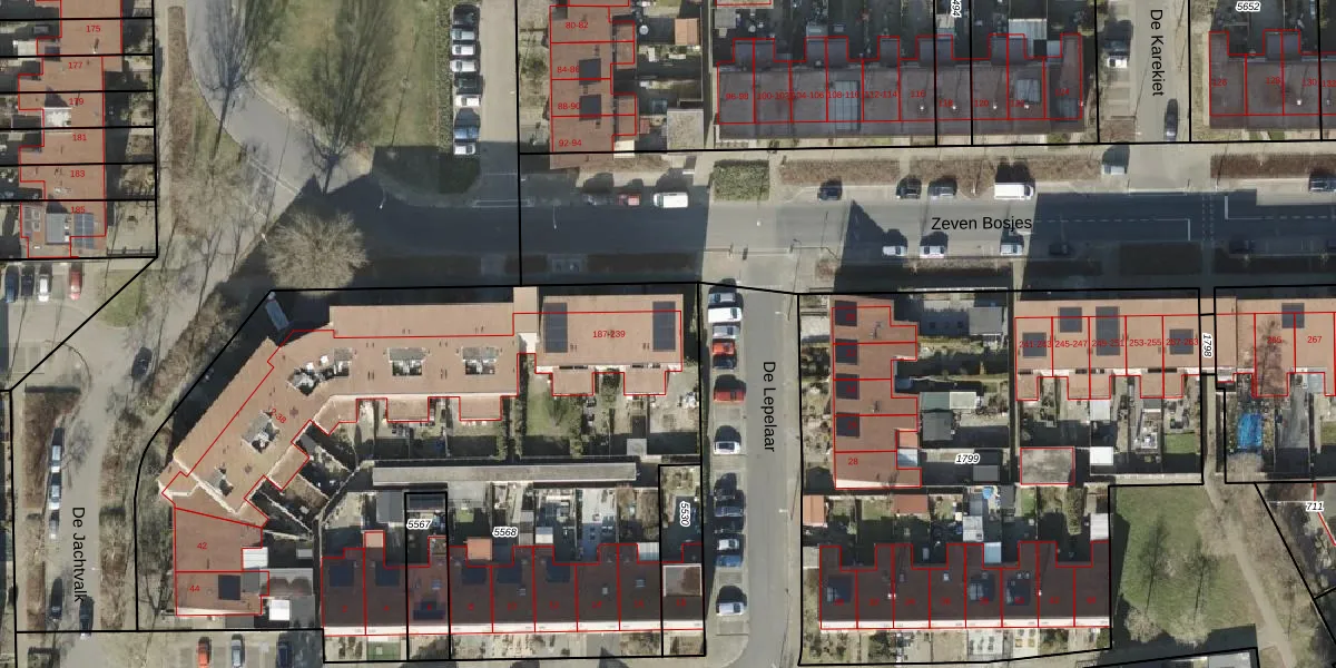 Het perceel waarop Zeven Bosjes 201 staat heeft een oppervlakte van 3995 m². Dit is een zeer groot perceel. De perceeloppervlakte wordt geregistreerd door het Kadaster. Gedetailleerde informatie over de maten van dit perceel kunt u vinden in het rapport Kadastrale kaart met maatvoering van Zeven Bosjes 201.