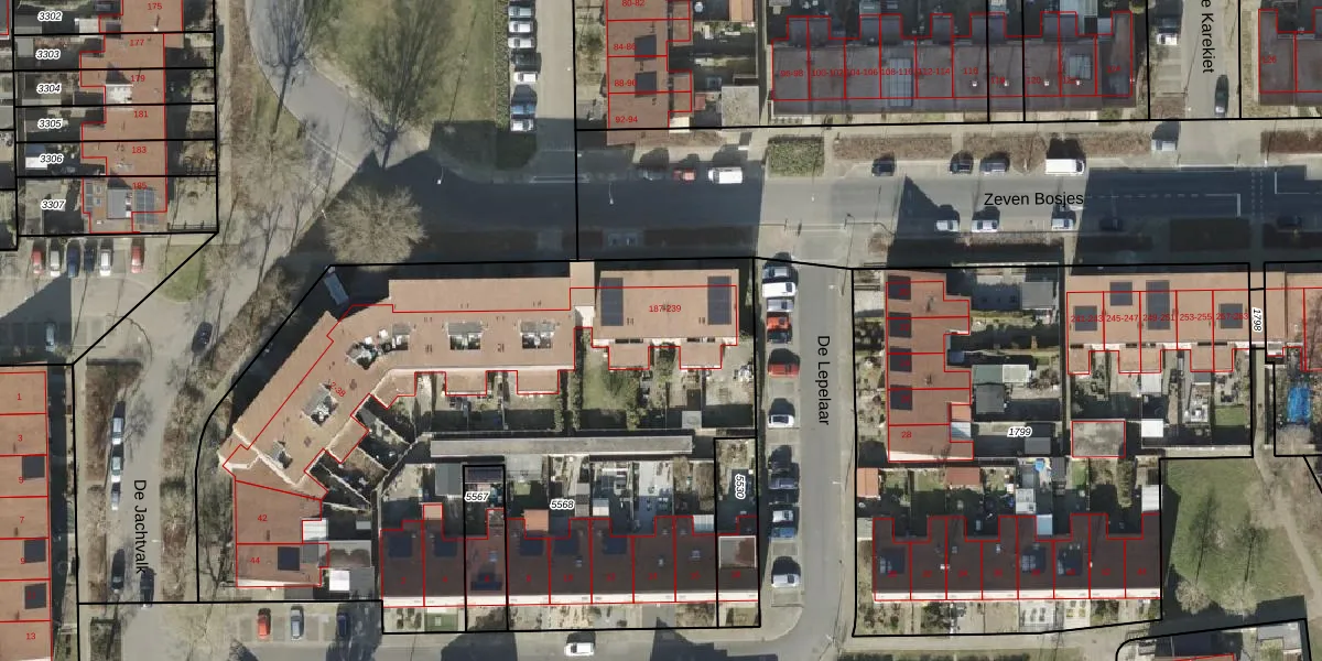 Het perceel waarop Zeven Bosjes 235 staat heeft een oppervlakte van 3995 m². Dit is een zeer groot perceel. De perceeloppervlakte wordt geregistreerd door het Kadaster. Gedetailleerde informatie over de maten van dit perceel kunt u vinden in het rapport Kadastrale kaart met maatvoering van Zeven Bosjes 235.