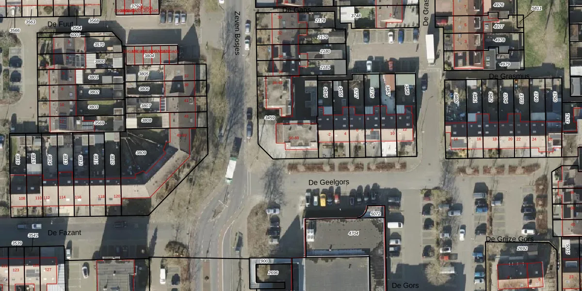 Het perceel waarop Zeven Bosjes 50 staat heeft een oppervlakte van 575 m². Dit is een groot perceel. De perceeloppervlakte wordt geregistreerd door het Kadaster. Gedetailleerde informatie over de maten van dit perceel kunt u vinden in het rapport Kadastrale kaart met maatvoering van Zeven Bosjes 50.