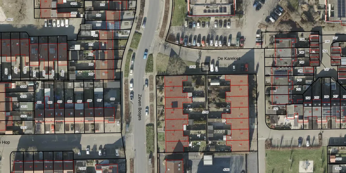 Het perceel waarop Zeven Bosjes 64 staat heeft een oppervlakte van 2580 m². Dit is een zeer groot perceel. De perceeloppervlakte wordt geregistreerd door het Kadaster. Gedetailleerde informatie over de maten van dit perceel kunt u vinden in het rapport Kadastrale kaart met maatvoering van Zeven Bosjes 64.