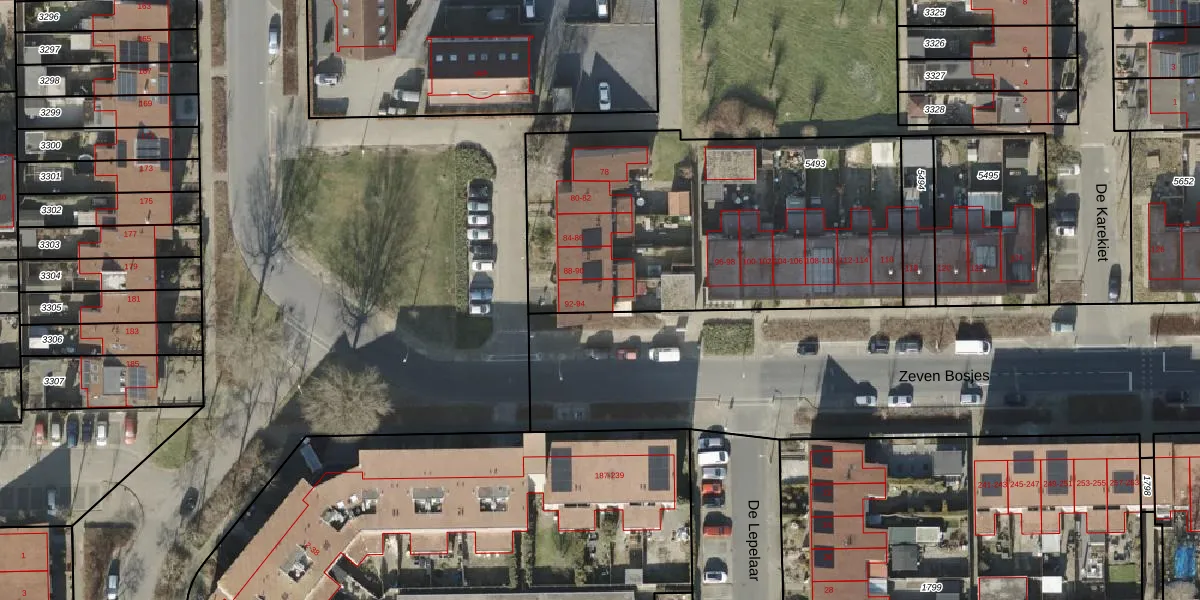 Het perceel waarop Zeven Bosjes 94 staat heeft een oppervlakte van 1825 m². Dit is een zeer groot perceel. De perceeloppervlakte wordt geregistreerd door het Kadaster. Gedetailleerde informatie over de maten van dit perceel kunt u vinden in het rapport Kadastrale kaart met maatvoering van Zeven Bosjes 94.