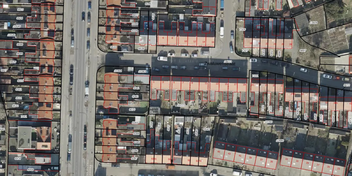 Het perceel waarop Zwaluwenstraat 5 staat heeft een oppervlakte van 1250 m². Dit is een zeer groot perceel. De perceeloppervlakte wordt geregistreerd door het Kadaster. Gedetailleerde informatie over de maten van dit perceel kunt u vinden in het rapport Kadastrale kaart met maatvoering van Zwaluwenstraat 5.