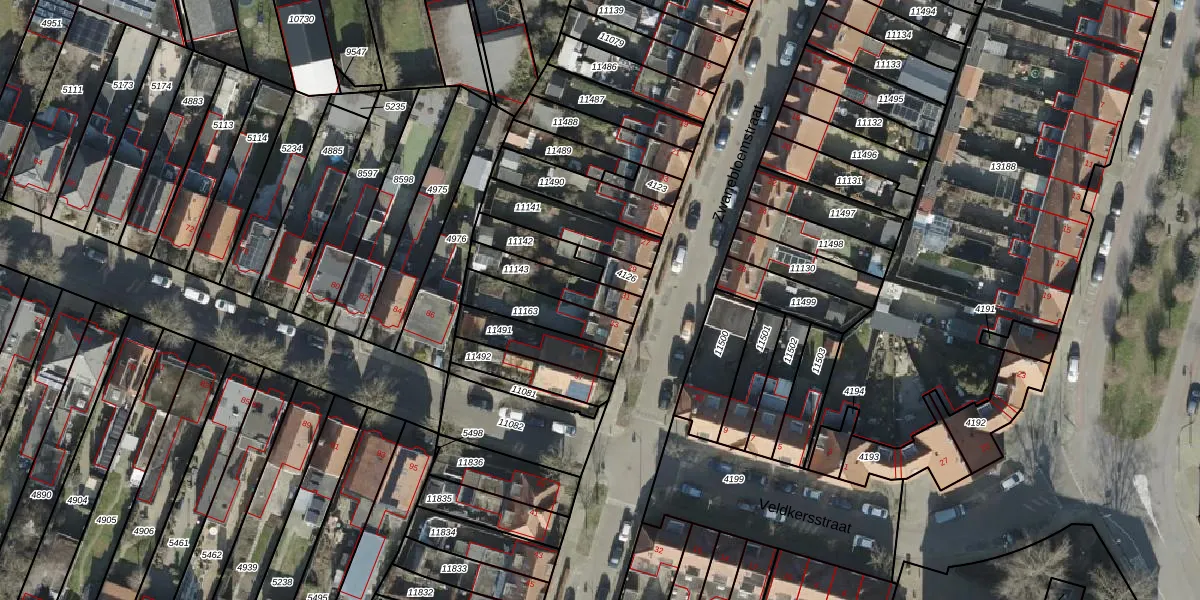 Gebruik de zoekbalk of klik op een perceel voor informatie over de adressen binnen dit perceel.