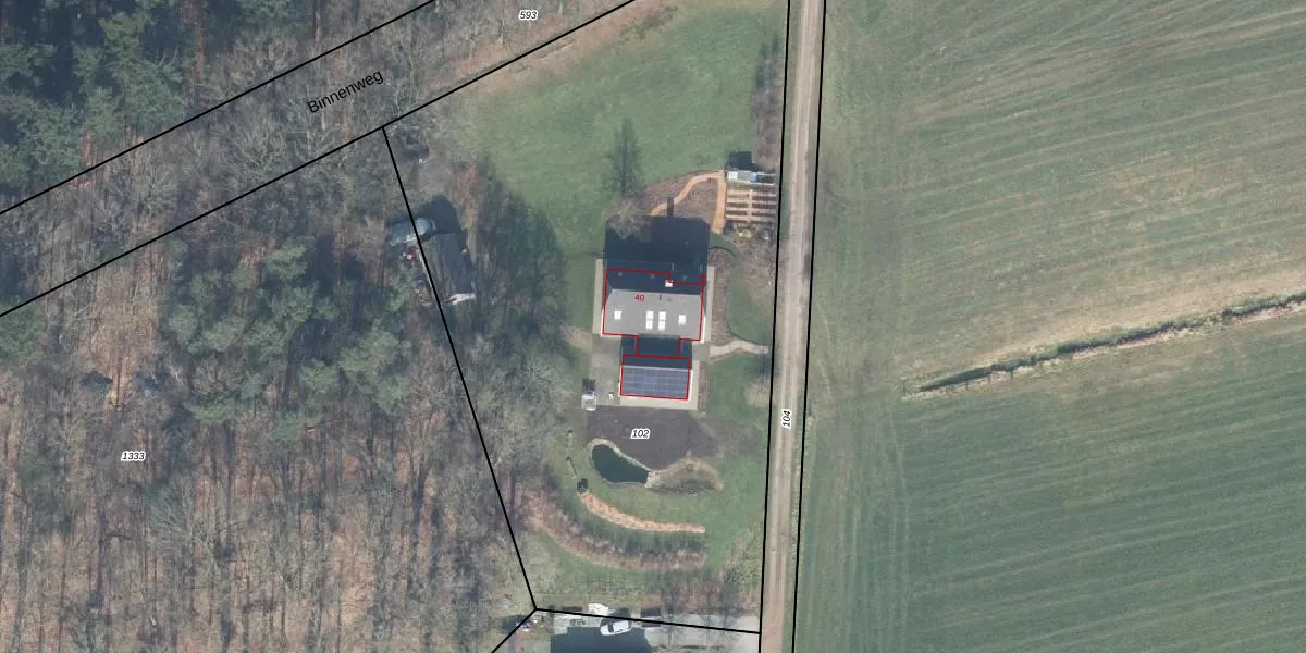 Binnenweg 40 is gelegen op kadastraal perceel GSL01G102. Deze kadastrale aanduiding is uniek en wordt gebruikt door het Kadaster om eigendomsrechten en andere zakelijke rechten vast te leggen. Het perceel maakt onderdeel uit van de kadastrale gemeente Gorssel.
