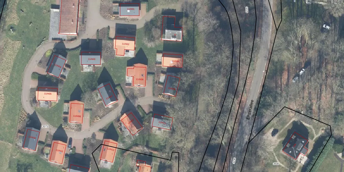 Het perceel waarop Ehzerallee 11-H09 staat heeft een oppervlakte van 3,0 ha. Dit is een zeer groot perceel. De perceeloppervlakte wordt geregistreerd door het Kadaster. Gedetailleerde informatie over de maten van dit perceel kunt u vinden in het rapport Kadastrale kaart met maatvoering van Ehzerallee 11-H09.