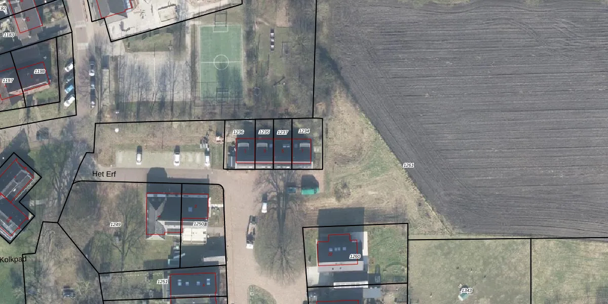 Het perceel waarop Het Erf 7 staat heeft een oppervlakte van 168 m². Dit is een middelgroot perceel. De perceeloppervlakte wordt geregistreerd door het Kadaster. Gedetailleerde informatie over de maten van dit perceel kunt u vinden in het rapport Kadastrale kaart met maatvoering van Het Erf 7.