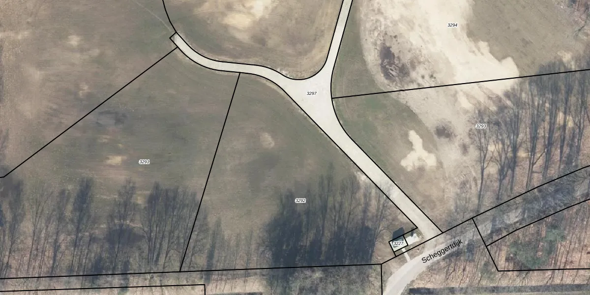 Het perceel waarop Scheggertdijk 7 staat heeft een oppervlakte van 3190 m². Dit is een zeer groot perceel. De perceeloppervlakte wordt geregistreerd door het Kadaster. Gedetailleerde informatie over de maten van dit perceel kunt u vinden in het rapport Kadastrale kaart met maatvoering van Scheggertdijk 7.