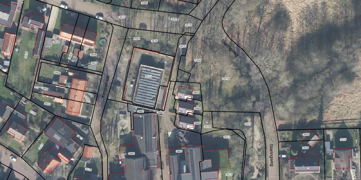 Staringweg 1-a is gelegen op kadastraal perceel AMN00D3485. Deze kadastrale aanduiding is uniek en wordt gebruikt door het Kadaster om eigendomsrechten en andere zakelijke rechten vast te leggen. Het perceel maakt onderdeel uit van de kadastrale gemeente Almen.