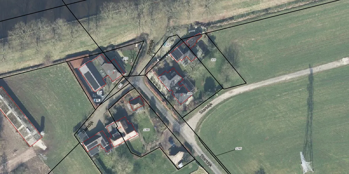 Startdijk 13 is gelegen op kadastraal perceel GSL01G584. Deze kadastrale aanduiding is uniek en wordt gebruikt door het Kadaster om eigendomsrechten en andere zakelijke rechten vast te leggen. Het perceel maakt onderdeel uit van de kadastrale gemeente Gorssel.