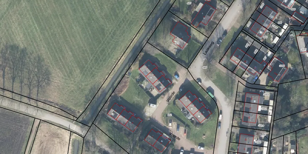 Het perceel waarop Voorde 2 staat heeft een oppervlakte van 4901 m². Dit is een zeer groot perceel. De perceeloppervlakte wordt geregistreerd door het Kadaster. Gedetailleerde informatie over de maten van dit perceel kunt u vinden in het rapport Kadastrale kaart met maatvoering van Voorde 2.