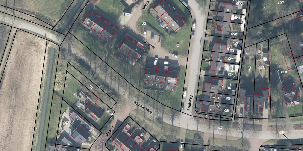 Het perceel waarop Voorde 9 staat heeft een oppervlakte van 4901 m². Dit is een zeer groot perceel. De perceeloppervlakte wordt geregistreerd door het Kadaster. Gedetailleerde informatie over de maten van dit perceel kunt u vinden in het rapport Kadastrale kaart met maatvoering van Voorde 9.