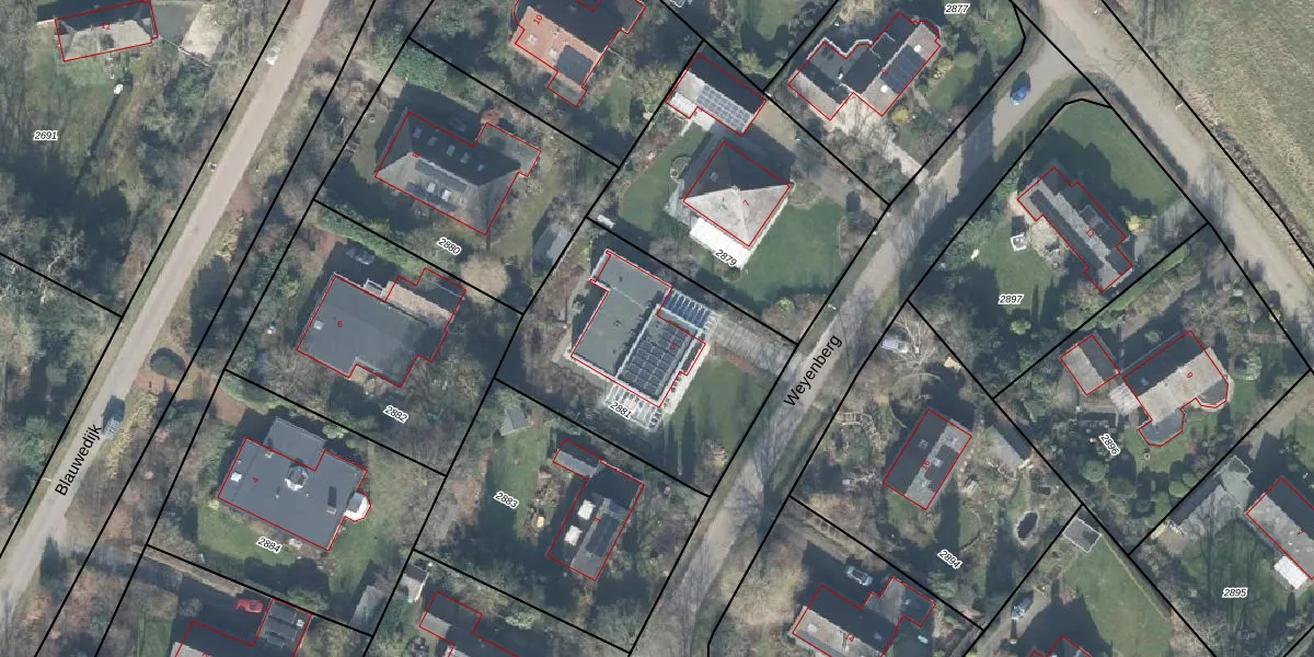 Het perceel waarop Weyenberg 5 staat heeft een oppervlakte van 1045 m². Dit is een zeer groot perceel. De perceeloppervlakte wordt geregistreerd door het Kadaster. Gedetailleerde informatie over de maten van dit perceel kunt u vinden in het rapport Kadastrale kaart met maatvoering van Weyenberg 5.