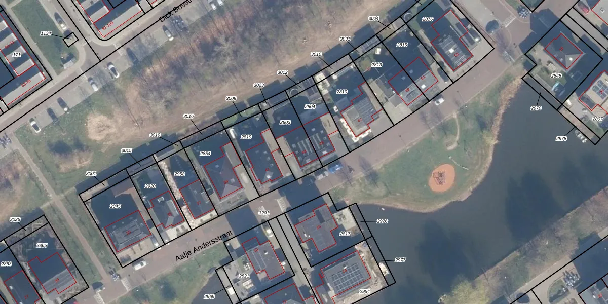 Het perceel waarop Aafje Andersstraat 43 staat heeft een oppervlakte van 251 m². Dit is een middelgroot perceel. De perceeloppervlakte wordt geregistreerd door het Kadaster. Gedetailleerde informatie over de maten van dit perceel kunt u vinden in het rapport Kadastrale kaart met maatvoering van Aafje Andersstraat 43.