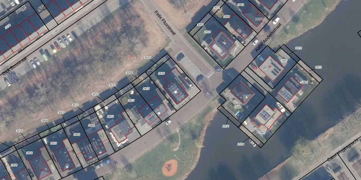 Het perceel waarop Aafje Andersstraat 53 staat heeft een oppervlakte van 421 m². Dit is een groot perceel. De perceeloppervlakte wordt geregistreerd door het Kadaster. Gedetailleerde informatie over de maten van dit perceel kunt u vinden in het rapport Kadastrale kaart met maatvoering van Aafje Andersstraat 53.
