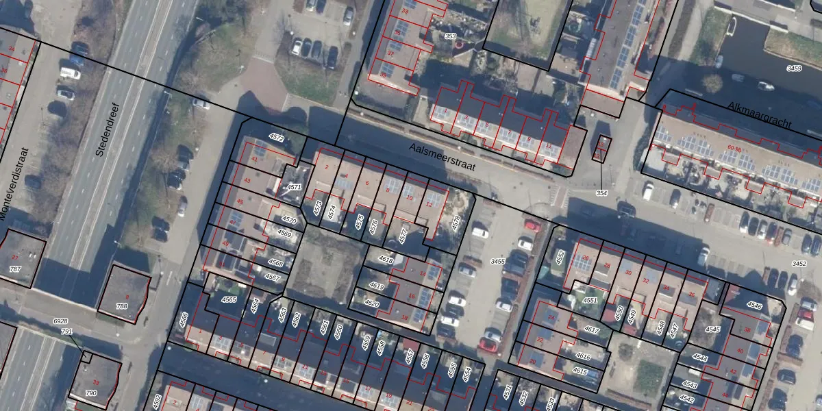 Aalsmeerstraat 10 is gelegen op kadastraal perceel AMR04K4577. Deze kadastrale aanduiding is uniek en wordt gebruikt door het Kadaster om eigendomsrechten en andere zakelijke rechten vast te leggen. Het perceel maakt onderdeel uit van de kadastrale gemeente Almere.