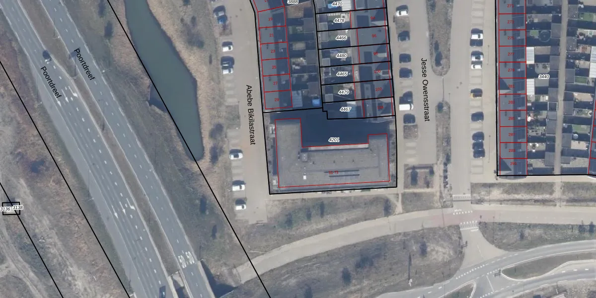 Abebe Bikilastraat 31 is gelegen op kadastraal perceel AMR04W4201. Deze kadastrale aanduiding is uniek en wordt gebruikt door het Kadaster om eigendomsrechten en andere zakelijke rechten vast te leggen. Het perceel maakt onderdeel uit van de kadastrale gemeente Almere.