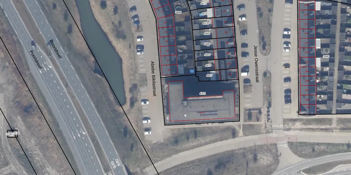 Abebe Bikilastraat 51 is gelegen op kadastraal perceel AMR04W4201. Deze kadastrale aanduiding is uniek en wordt gebruikt door het Kadaster om eigendomsrechten en andere zakelijke rechten vast te leggen. Het perceel maakt onderdeel uit van de kadastrale gemeente Almere.