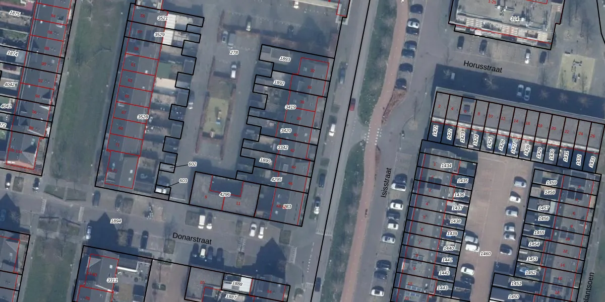Gebruik de zoekbalk of klik op een perceel voor informatie over de adressen binnen dit perceel.