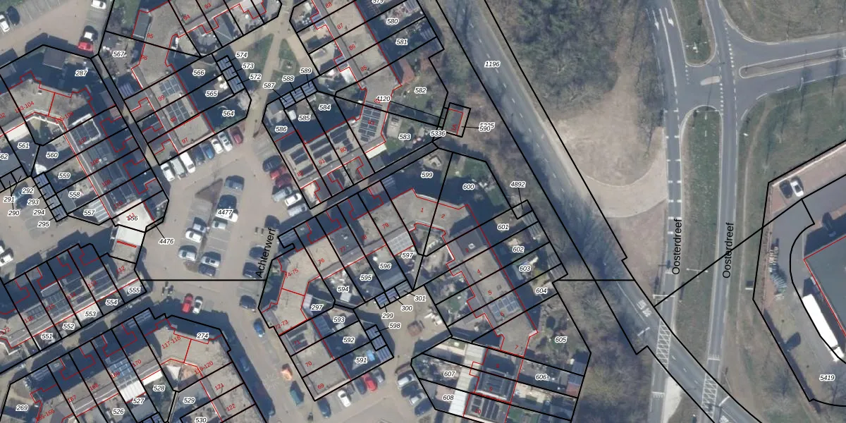 Het perceel waarop Achterwerf 1 staat heeft een oppervlakte van 212 m². Dit is een middelgroot perceel. De perceeloppervlakte wordt geregistreerd door het Kadaster. Gedetailleerde informatie over de maten van dit perceel kunt u vinden in het rapport Kadastrale kaart met maatvoering van Achterwerf 1.
