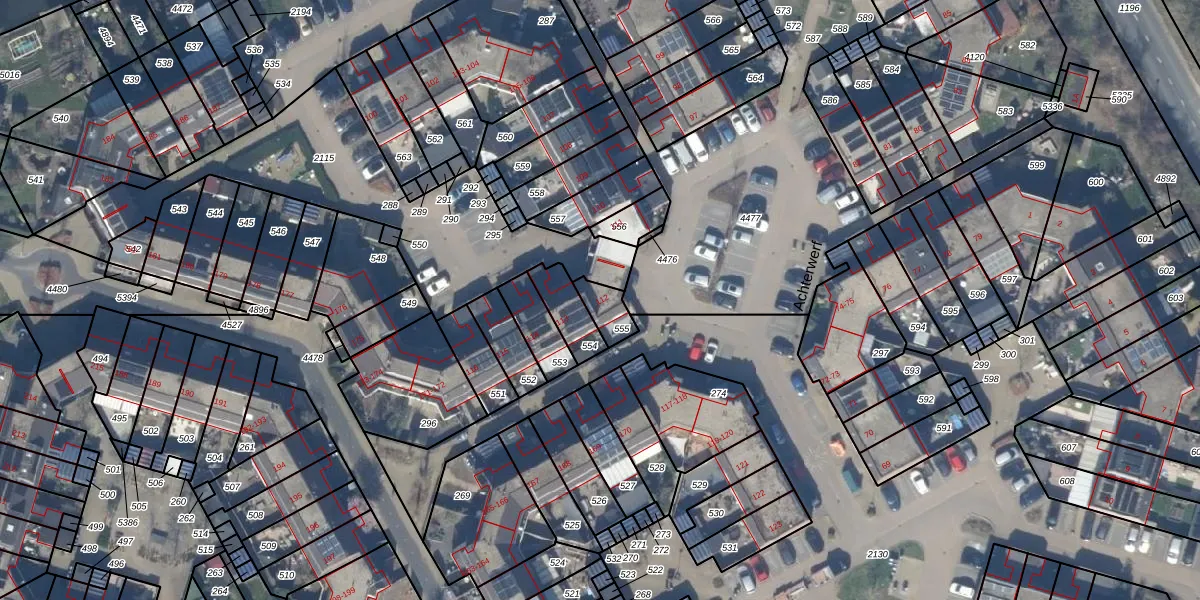 Het perceel waarop Achterwerf 112 staat heeft een oppervlakte van 66 m². Dit is een klein perceel. De perceeloppervlakte wordt geregistreerd door het Kadaster. Gedetailleerde informatie over de maten van dit perceel kunt u vinden in het rapport Kadastrale kaart met maatvoering van Achterwerf 112.