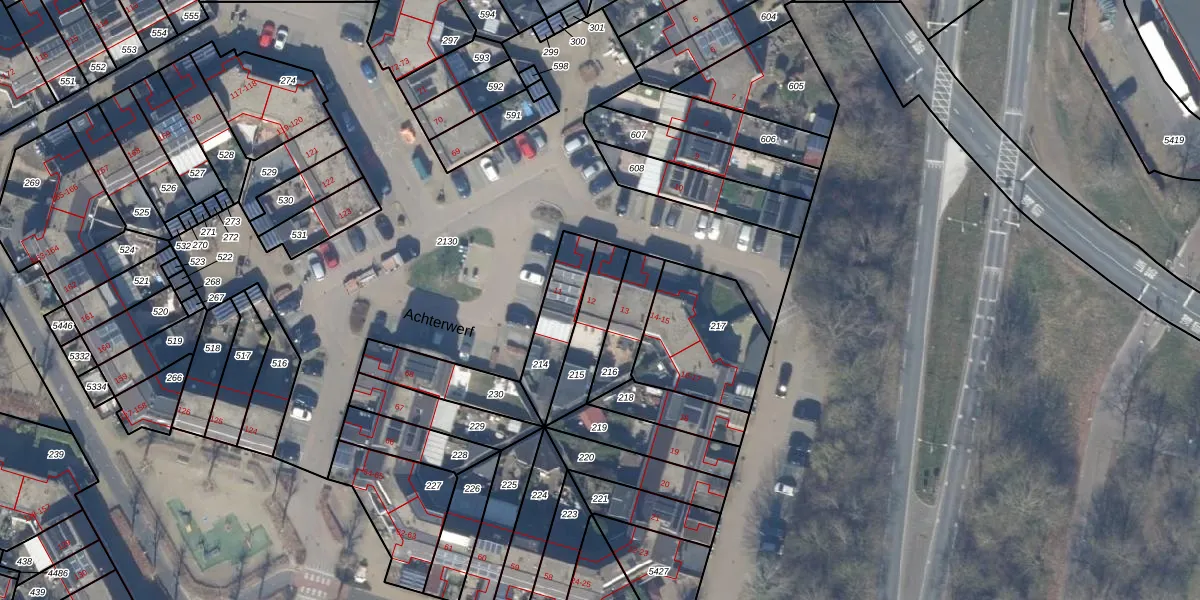 Het perceel waarop Achterwerf 12 staat heeft een oppervlakte van 167 m². Dit is een middelgroot perceel. De perceeloppervlakte wordt geregistreerd door het Kadaster. Gedetailleerde informatie over de maten van dit perceel kunt u vinden in het rapport Kadastrale kaart met maatvoering van Achterwerf 12.