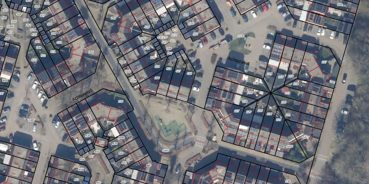 Het perceel waarop Achterwerf 124 staat heeft een oppervlakte van 138 m². Dit is een middelgroot perceel. De perceeloppervlakte wordt geregistreerd door het Kadaster. Gedetailleerde informatie over de maten van dit perceel kunt u vinden in het rapport Kadastrale kaart met maatvoering van Achterwerf 124.