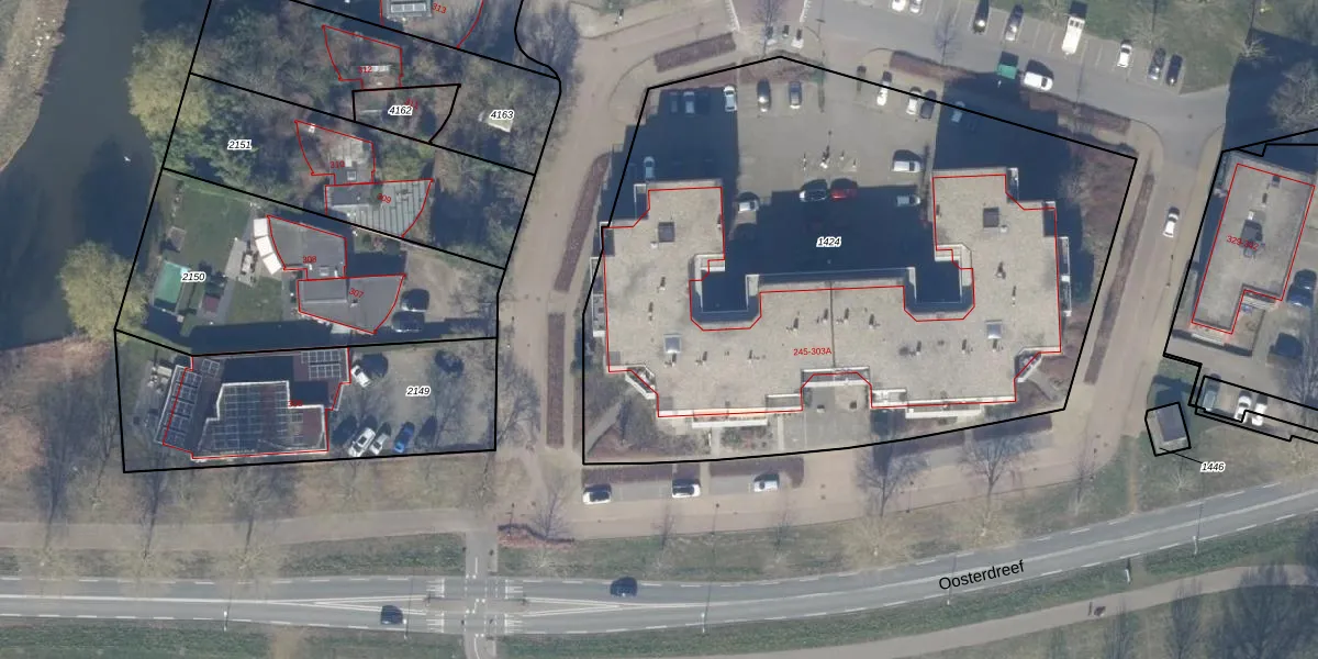 Het perceel waarop Achterwerf 281 staat heeft een oppervlakte van 4006 m². Dit is een zeer groot perceel. De perceeloppervlakte wordt geregistreerd door het Kadaster. Gedetailleerde informatie over de maten van dit perceel kunt u vinden in het rapport Kadastrale kaart met maatvoering van Achterwerf 281.