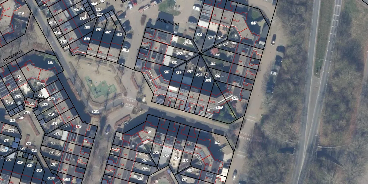 Het perceel waarop Achterwerf 60 staat heeft een oppervlakte van 167 m². Dit is een middelgroot perceel. De perceeloppervlakte wordt geregistreerd door het Kadaster. Gedetailleerde informatie over de maten van dit perceel kunt u vinden in het rapport Kadastrale kaart met maatvoering van Achterwerf 60.