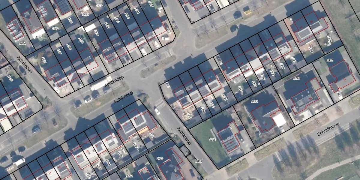 Het perceel waarop Achtknoop 34 staat heeft een oppervlakte van 336 m². Dit is een groot perceel. De perceeloppervlakte wordt geregistreerd door het Kadaster. Gedetailleerde informatie over de maten van dit perceel kunt u vinden in het rapport Kadastrale kaart met maatvoering van Achtknoop 34.