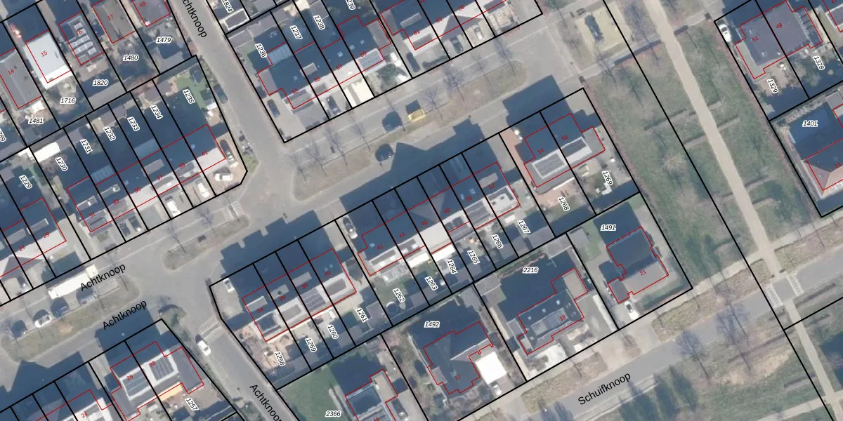 Het perceel waarop Achtknoop 46 staat heeft een oppervlakte van 172 m². Dit is een middelgroot perceel. De perceeloppervlakte wordt geregistreerd door het Kadaster. Gedetailleerde informatie over de maten van dit perceel kunt u vinden in het rapport Kadastrale kaart met maatvoering van Achtknoop 46.