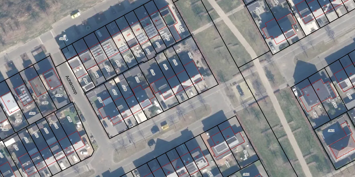 Het perceel waarop Achtknoop 63 staat heeft een oppervlakte van 184 m². Dit is een middelgroot perceel. De perceeloppervlakte wordt geregistreerd door het Kadaster. Gedetailleerde informatie over de maten van dit perceel kunt u vinden in het rapport Kadastrale kaart met maatvoering van Achtknoop 63.