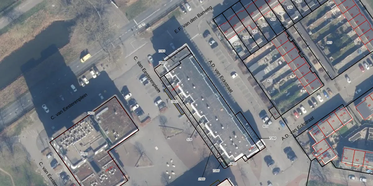 A.D. van Eckstraat 16 is gelegen op kadastraal perceel AMR04P578. Deze kadastrale aanduiding is uniek en wordt gebruikt door het Kadaster om eigendomsrechten en andere zakelijke rechten vast te leggen. Het perceel maakt onderdeel uit van de kadastrale gemeente Almere.