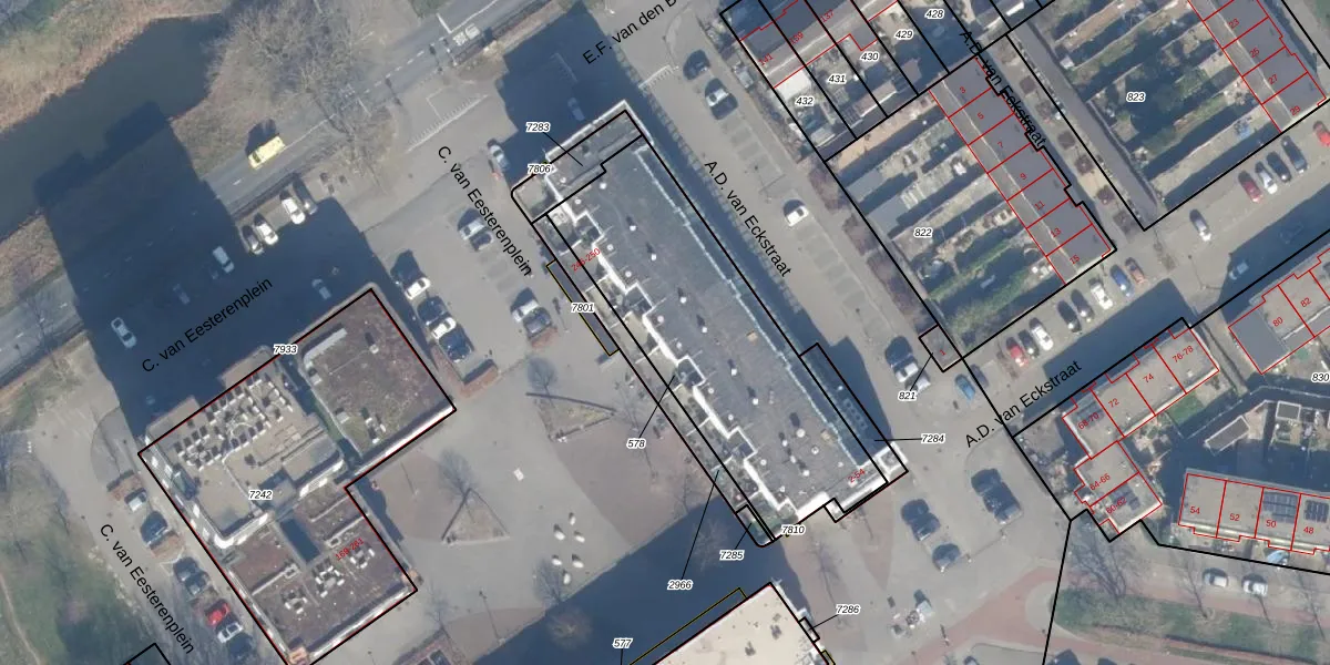 A.D. van Eckstraat 30 is gelegen op kadastraal perceel AMR04P578. Deze kadastrale aanduiding is uniek en wordt gebruikt door het Kadaster om eigendomsrechten en andere zakelijke rechten vast te leggen. Het perceel maakt onderdeel uit van de kadastrale gemeente Almere.