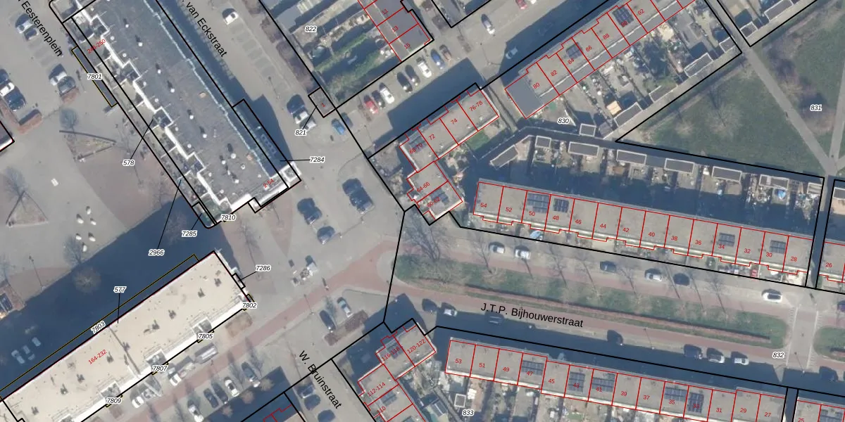 Het perceel waarop A.D. van Eckstraat 60 staat heeft een oppervlakte van 4087 m². Dit is een zeer groot perceel. De perceeloppervlakte wordt geregistreerd door het Kadaster. Gedetailleerde informatie over de maten van dit perceel kunt u vinden in het rapport Kadastrale kaart met maatvoering van A.D. van Eckstraat 60.